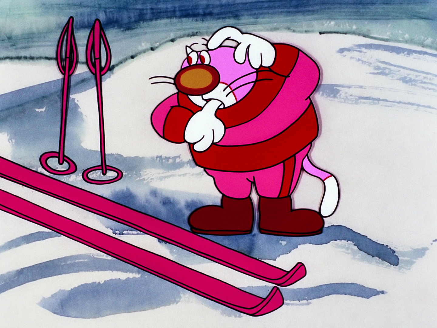 2匹の猫がスキー教室でスキーの練習をしています。先生は犬です。先生の努力にもかかわらず、猫たちはうまくなりません。しかし最後に猫たちは自分たちで独特なスキーの方法を見つけます。