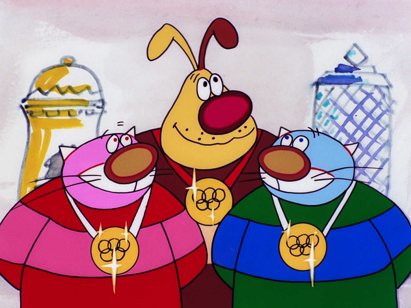 犬と2匹の猫のドタバタ劇を描いたコミカルなアニメーションです。