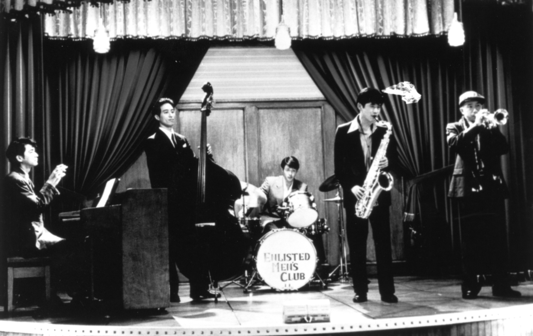 敗戦の傷痕が残る東京の米軍基地クラブを舞台に、外地から復員したバンドマンの若者たちがジャズに希望を見出していく群像劇。笠松則通キャメラマンと当時のタイミング担当・大見正晴氏の監修による、ネガ銀残しプリント。銀残しはポジ現像の際に行い、全体的な彩度を落とすことを目的とするケースが多いが、本作ではネガ現像の過程で銀残しを施して、ハイライトを際立たせる効果を狙っている。