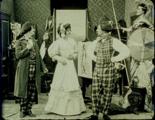 初期映画のセットを活かした喜劇で、親友の画家と詩人と、二人が愛する隣室の女性が、彼らをだました古着屋に仕返しをする。ほぼ全篇に近い状態。日本公開の詳細は不詳。