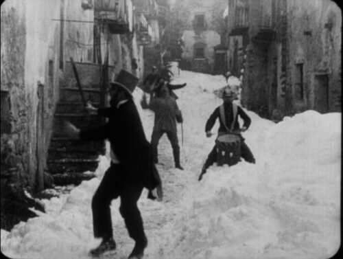 世界的にも小宮コレクションにしか現存しない作品の可能性が高く、ほぼ全篇に近い状態で残っているアンブロージオ社の貴重な喜劇。二人の男がコンビを組み、クマの皮をかぶってクマに化け、村人を驚かしていく・・・。