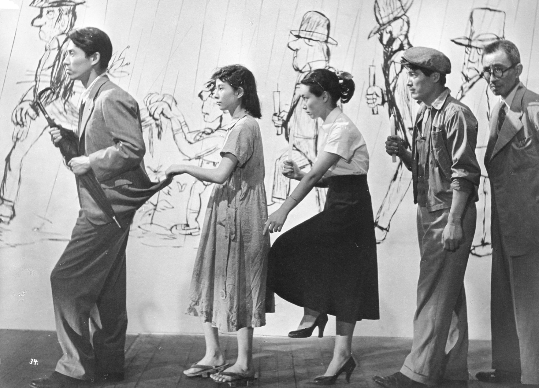 1954(青年俳優クラブ)(出)久我美子(鏡すて)(監)市川崑(脚)安部公房、横山泰三、長谷部慶次、和田夏十(撮)伊藤武夫(美)平川透徹(音)団伊玖磨(出)木村功、髙原駿雄、春日俊二、岡田英次、左幸子、山田五十鈴、伊藤雄之助、多々良純