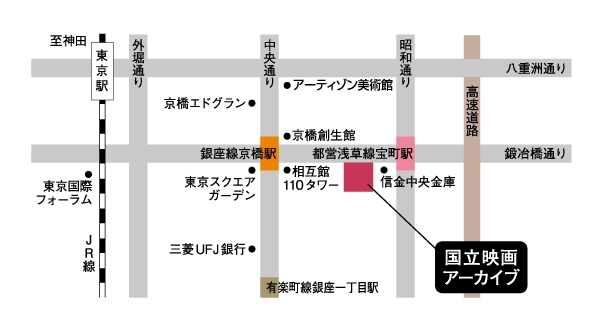 - 東京メトロ銀座線京橋駅出口1から昭和通り方向へ徒歩1分